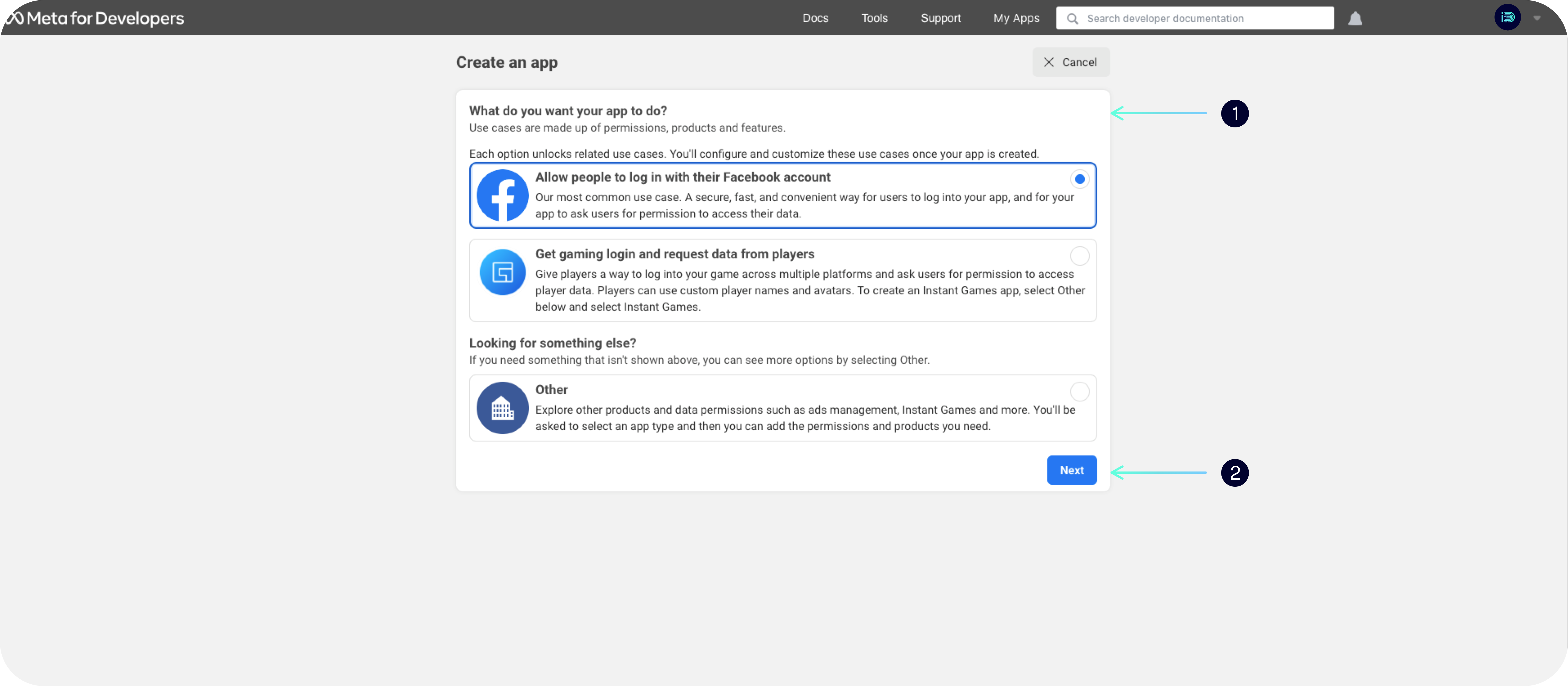 4. <mark style="color:purple;">**`Select the purpose of the App`**</mark> **->** Click on the <mark style="color:purple;">**`Next`**</mark> button